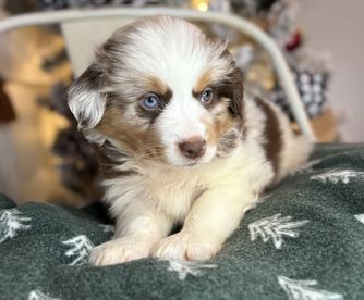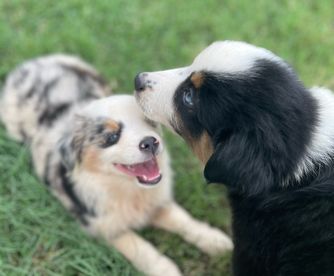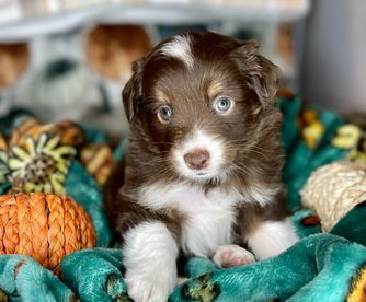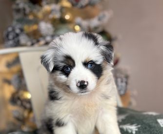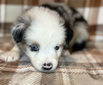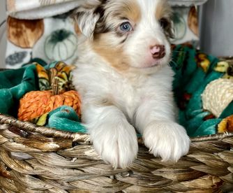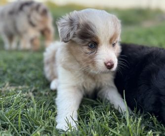 Our puppies include blue merle, black tri, red tri, and red merle. Colors will vary depending on the parent dogs.