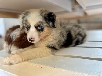 Starr is a female Miniature Australian Shepherd. Carefully selected as a great representative of her breed, Mikayla & Matthew decided to make her part of their program. Mikayla & Matthew has passed Good Dog’s screening process, which involved a review of their breeding practices, environment, and the mental and physical health of their dogs.