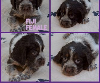 Our puppies include liver white and tan and black white and tan. Colors will vary depending on the parent dogs.