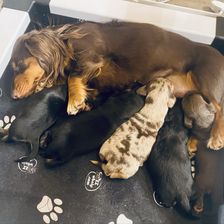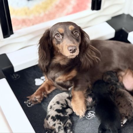I'm Sarah B., the breeder behind M&M’s Mini Dachshunds located in Jasper, GA. Our puppies become integral members of our family. They’re a daily part of everything we do until they’re ready to join their forever families. My husband, myself and even our kids enjoy spending group and individualized time with each puppy that comes through our home.