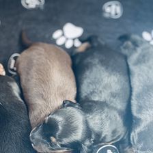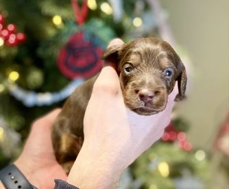 Our puppies include chocolate and tan, black and tan, and dapple. Colors will vary depending on the parent dogs.