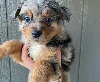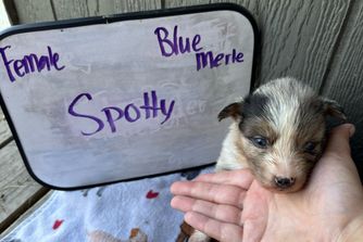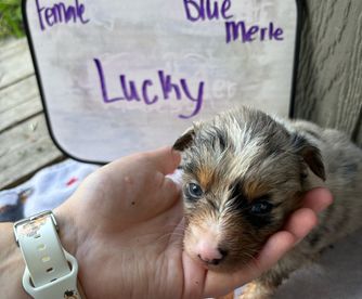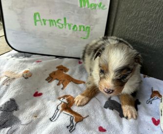 Our puppies include red merle and blue merle. Colors will vary depending on the parent dogs.