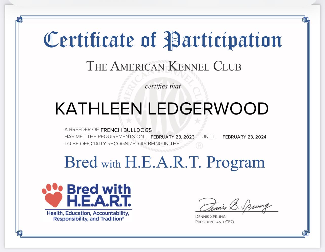 MO Frenchie Kisses meets or exceeds our community standards in these areas: