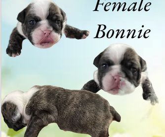 Our puppies include brindle and red and white. Colors will vary depending on the parent dogs.