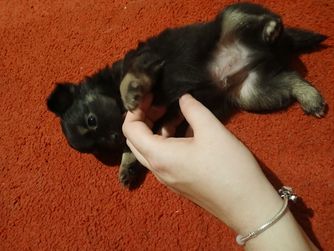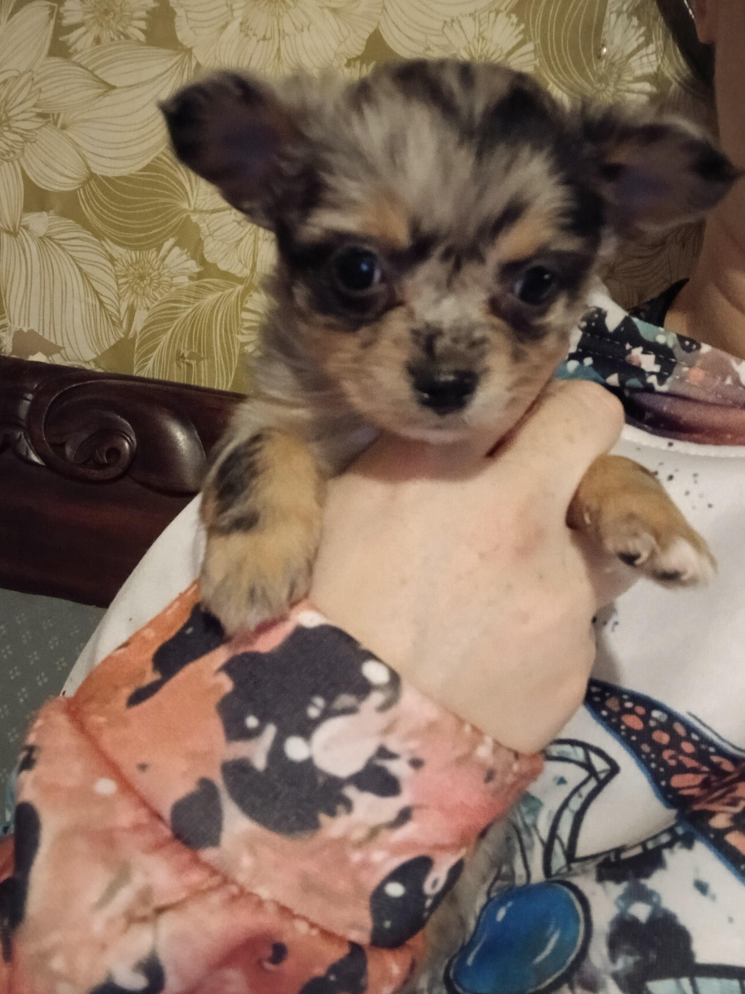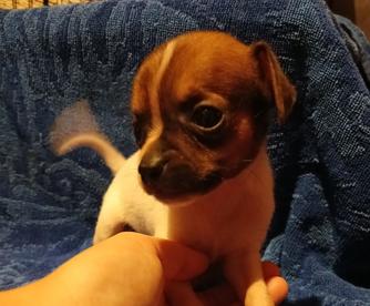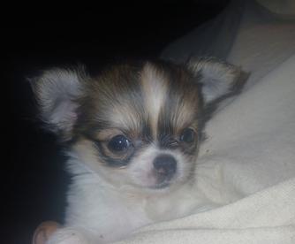 Super sweet playful loves toys and loves laying on you getting cuddles. Shy around people she doesnt know. She is 75 percent chihuahua and 25 percent pug. She weighs 10 pounds.
