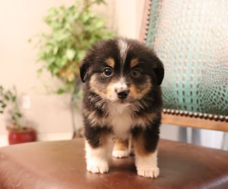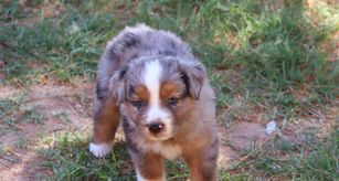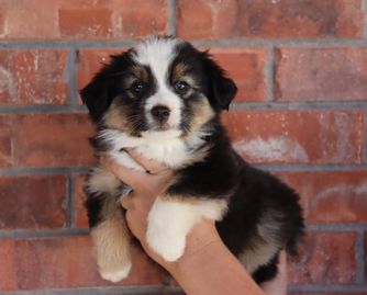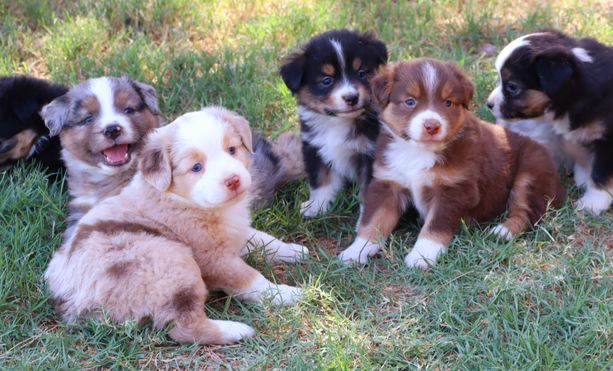 Our puppies include black tri, blue merle, and red tri. Colors will vary depending on the parent dogs.