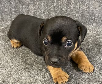 American Hunt Terrier puppies include black and tan, red, lilac, chocolate, blue, black and red, and black. Colors will vary depending on the parent dogs.