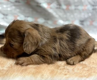 Copper is a male Dachshund. Carefully selected as a great representative of his breed, Shary decided to make him part of their program. Shary has passed Good Dog’s screening process, which involved a review of their breeding practices, environment, and the mental and physical health of their dogs.
