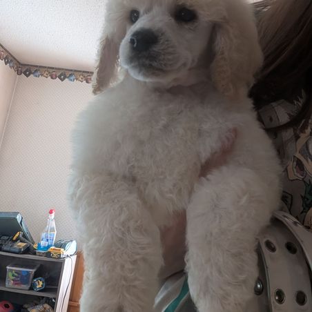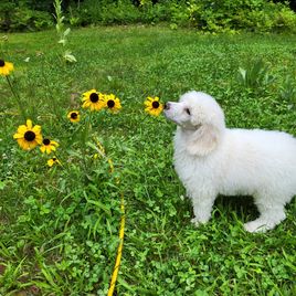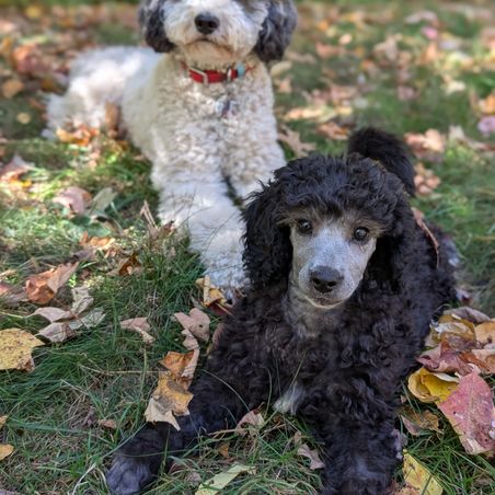 I'm Leah W., the breeder behind Moirae Poodles located in Salem Township, ME. I am a standard poodle enthusiast who occasionally produces litters of genetically diverse, fully health tested smaller standards/moyens. The majority of my poodles are altered pets and all of them are members of the family.