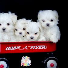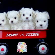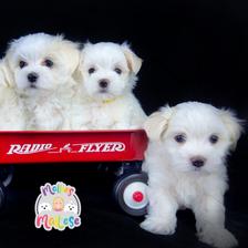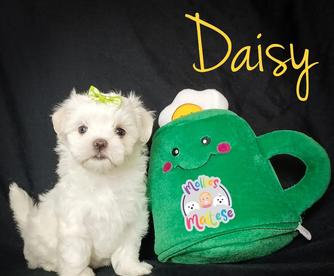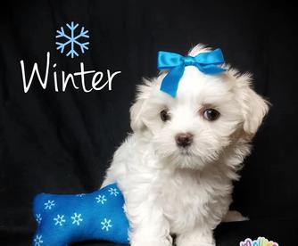 Our Maltese puppies are white. Poodle puppies include red, parti, and phantom. Colors will vary depending on the parent dogs.