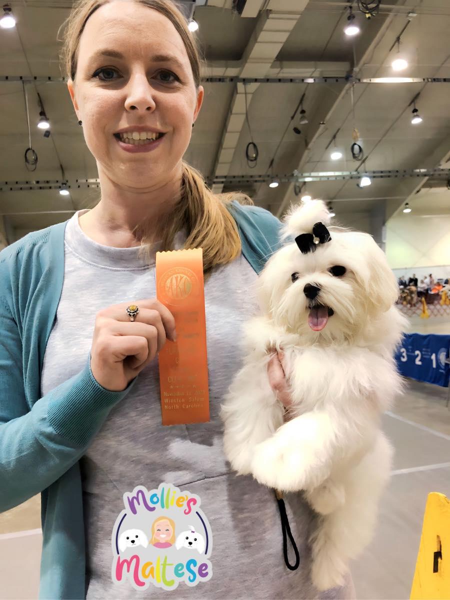 As we expand our program, we decided that we needed a second stud, especially as we hope to begin keeping some of "our own" puppies to continue a good bloodline. Meet "Falkor," who is AKC registered as "Mollie's NeverEnding Story." We call him our little international dog, as he is part Korean Maltese, and part Russian Maltese. As stated in Yu-Jin's bio, Falkor is "Maltese" through and through, but simply has an international heritage. He has at least 11 champions in his pedigree, ranging from Korea to Russia to Ukraine, and one from the United States. Falkor has been genetically-tested through Embark and has no genetic health conditions! We cannot wait to see his puppies when he's old enough :) He is SUPER sweet with a temperament like Yu-Jin's. He recently won "Best in Breed" in an AKC Beginner Puppy Show! We are so proud of him!!!