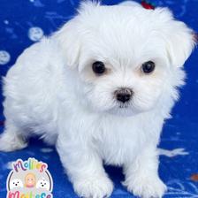 Meet Marsha, AKC registered as "Mollie's Marsha Mallow." She has been genetically tested through Embark and suffers from no genetic conditions! She weighs abou 6.5lb and should hopefully be having a litter by December 2024. She's sweet as a little soft, white marshmallow (get it?!)! We found out on her pedigree that she's actually Maggie's cousin (but we had no idea until after we got her). We can't wait to get to know these tiny little mini "marshamallow" pups born November 16!