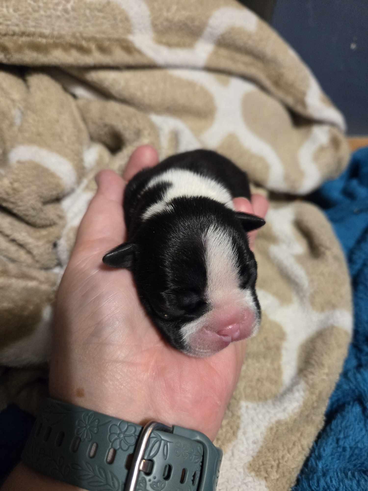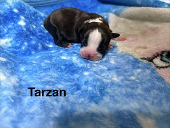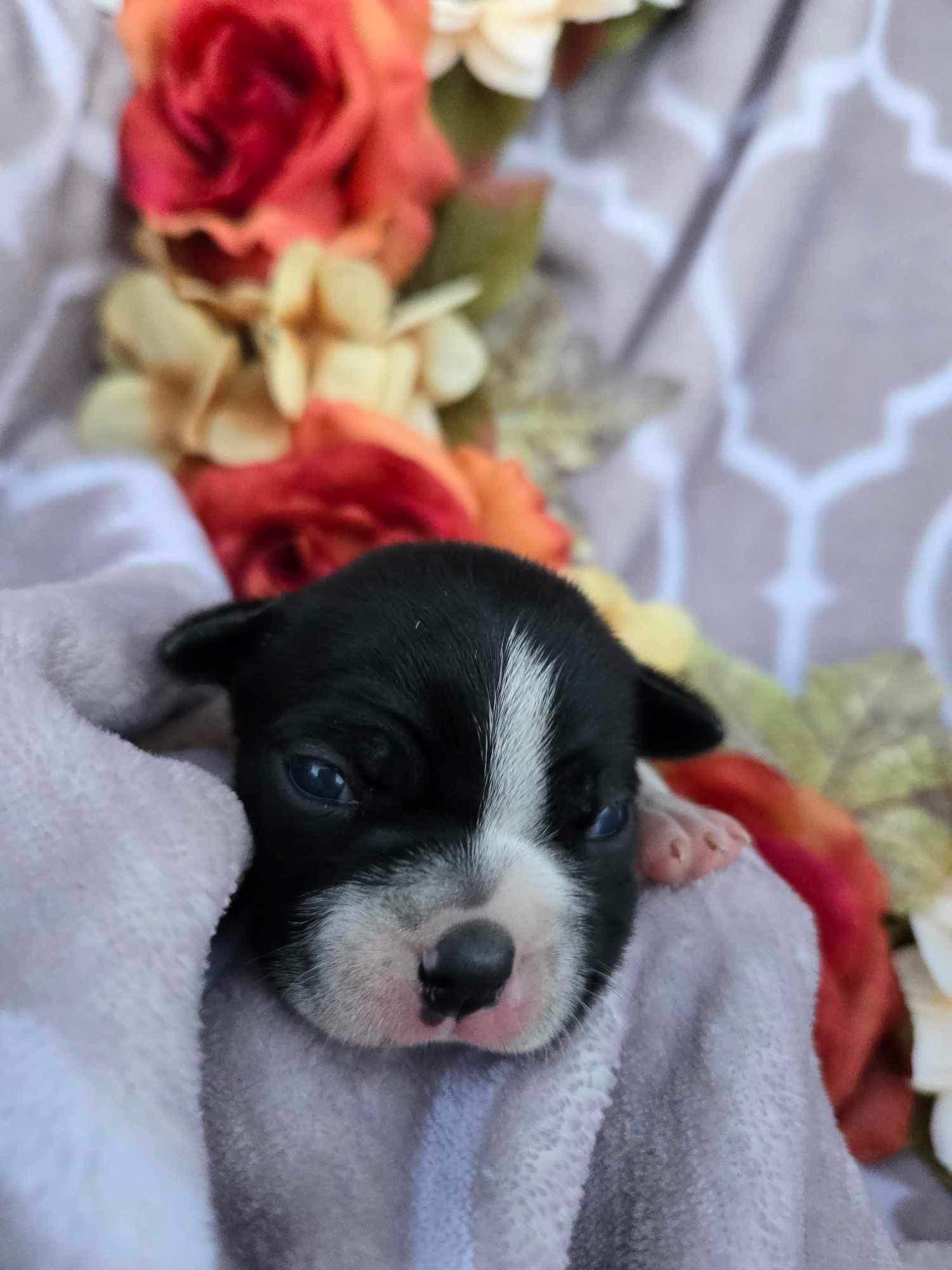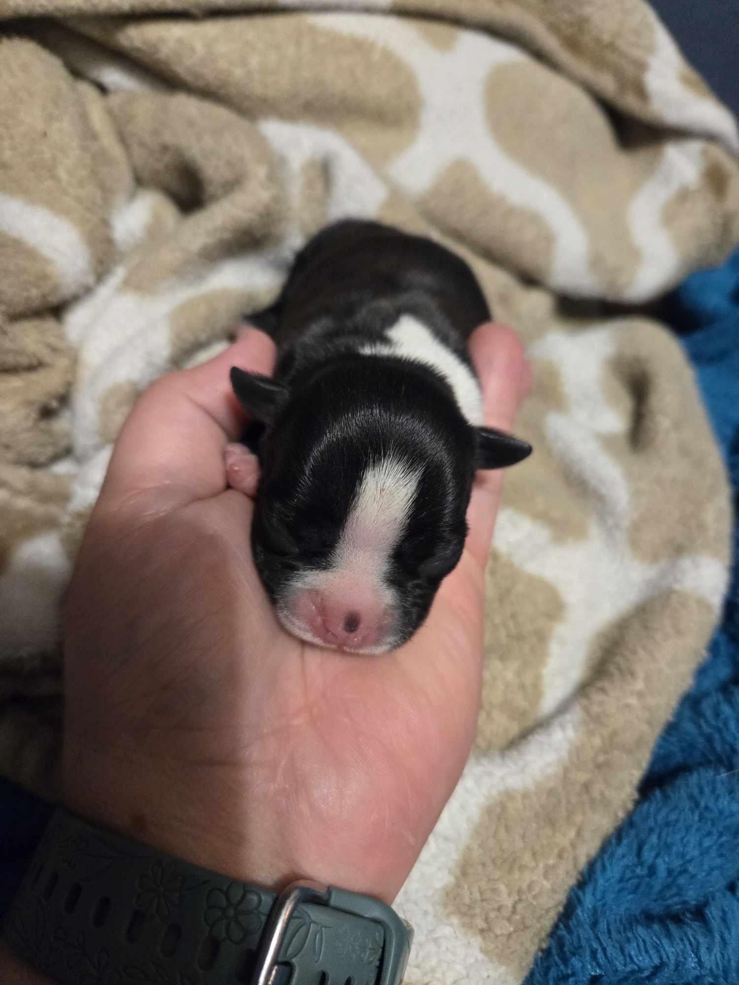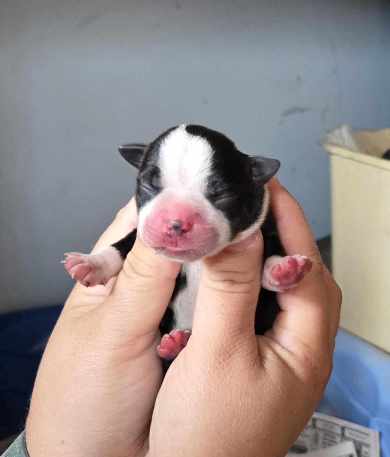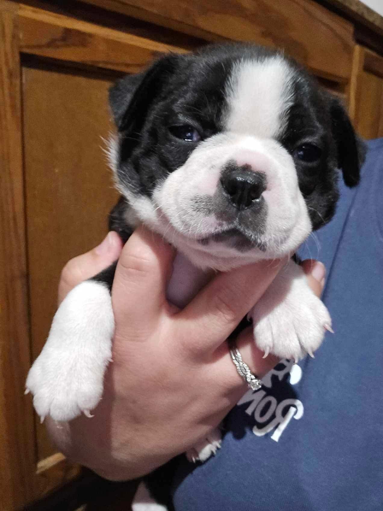 Our puppies include black brindle and white, seal brindle and white, seal and white, brindle and white, and black and white. Colors will vary depending on the parent dogs.