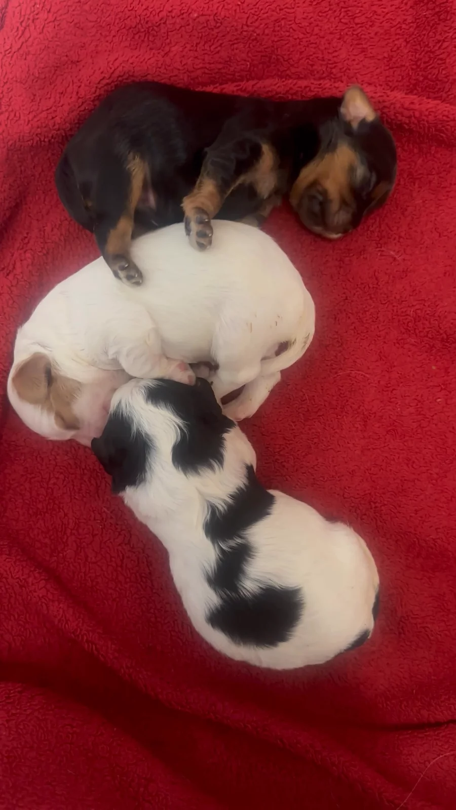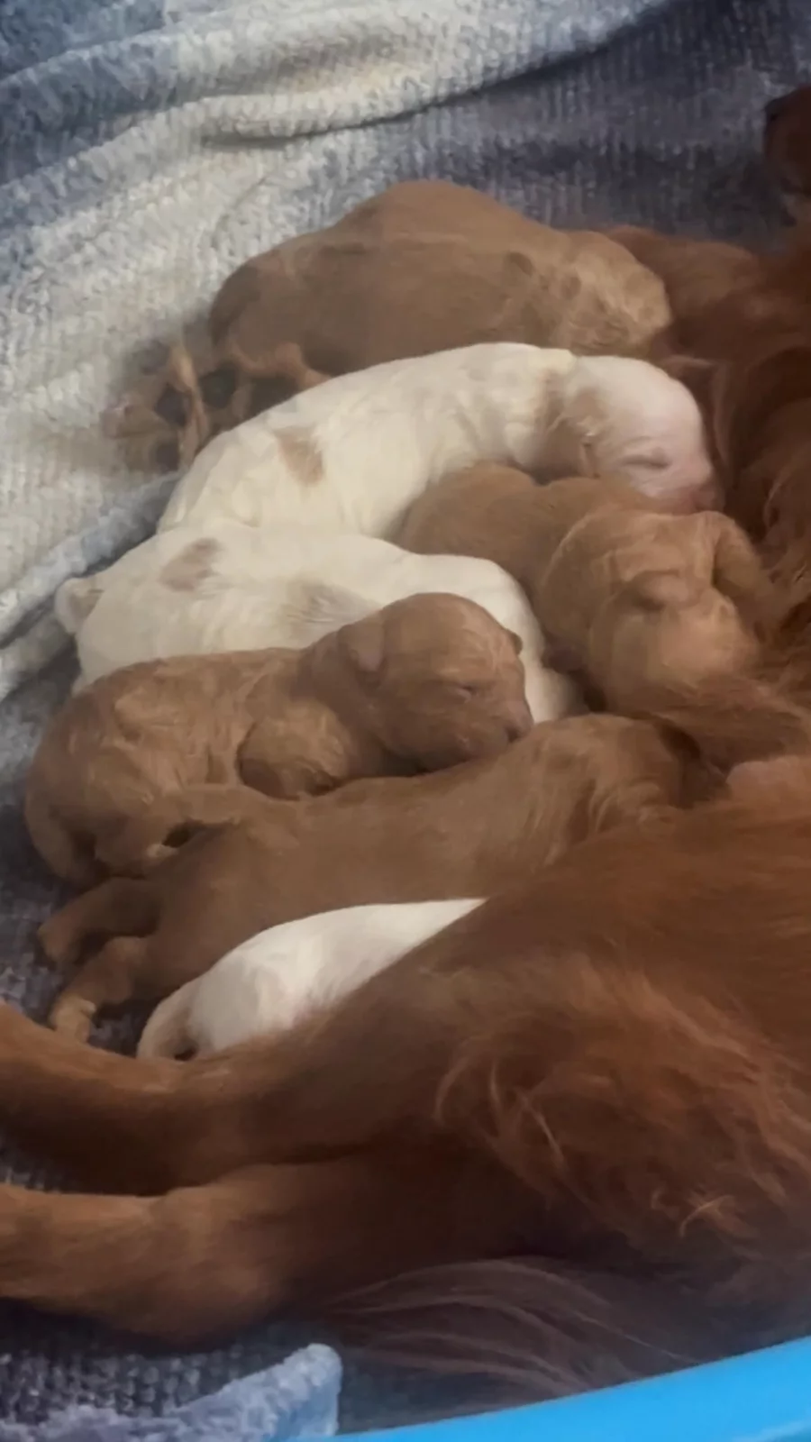 10 day old Cavapoo puppies slowly growing. Mia is an attentive sweet momma.