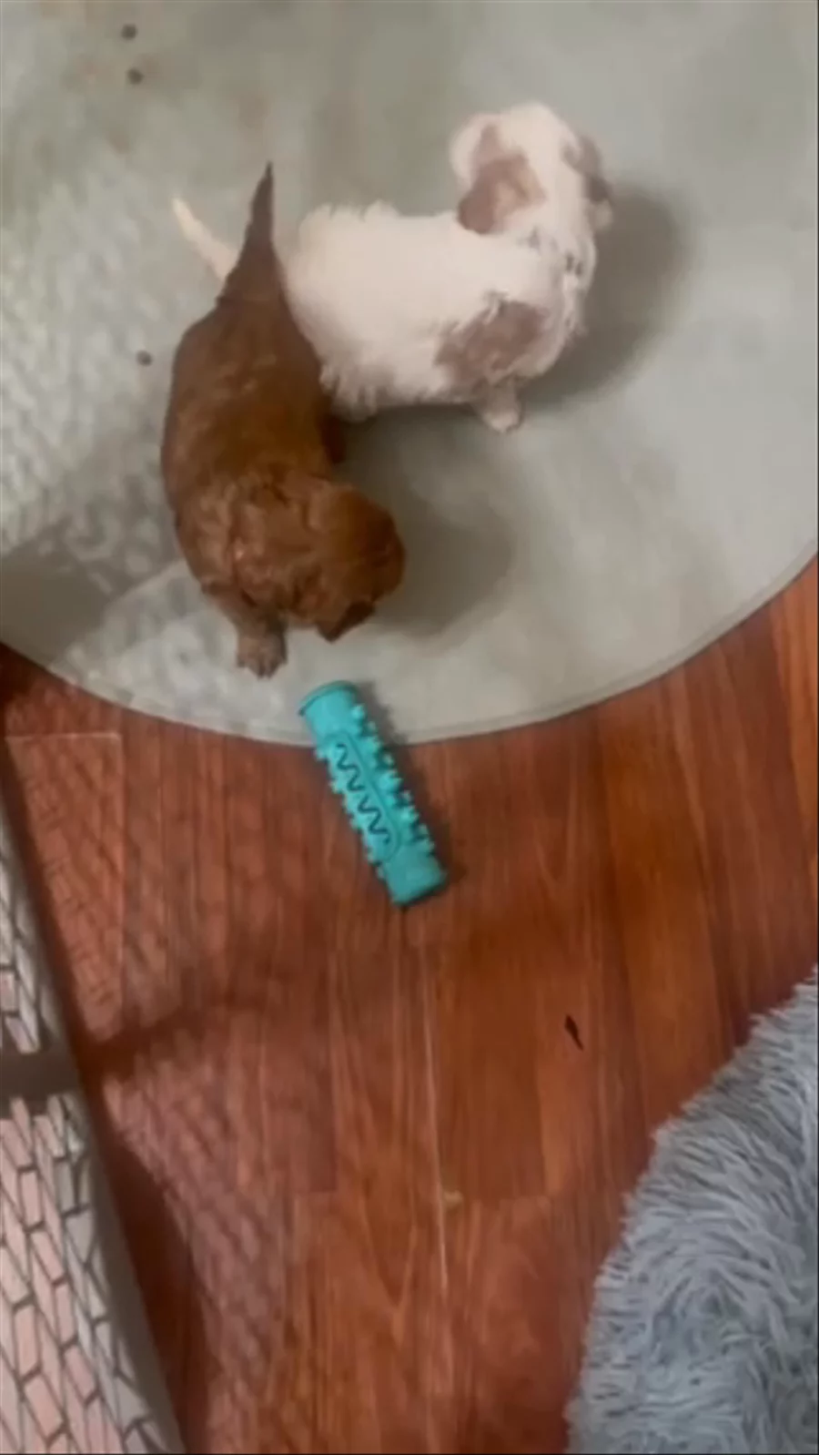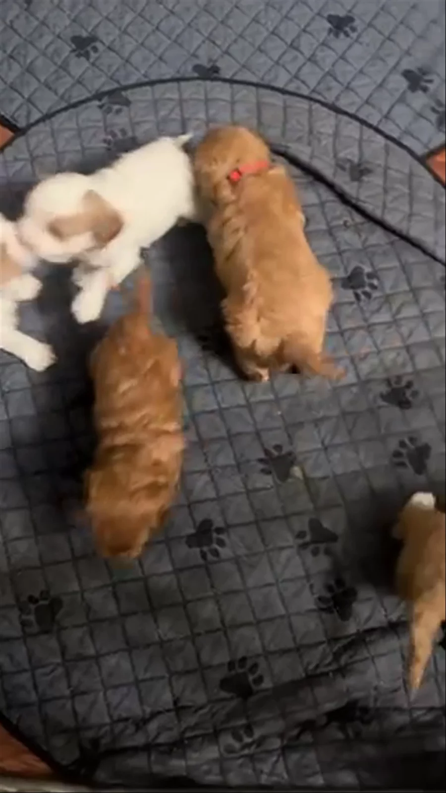 4 week old Cavapoo puppies on the move. They are starting to eat some puppy food and love to play.
