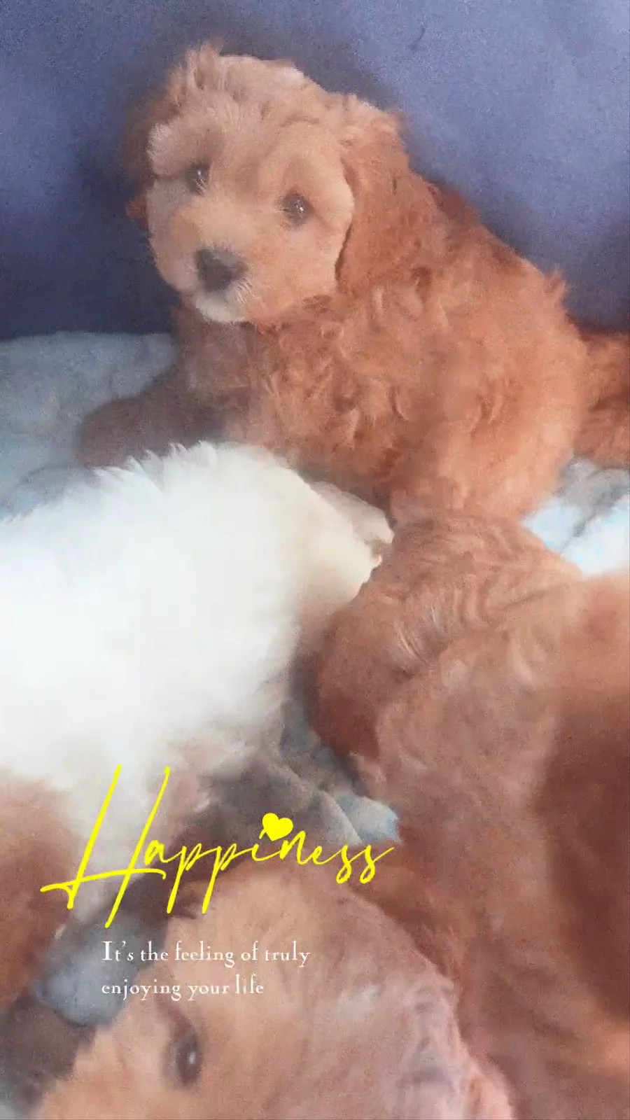 Molly is a red F1 Cavapoo who is the sweetest mom. She is very attentive and loving to her puppies. She is very calm and playful with her babies. Molly is great with kids.