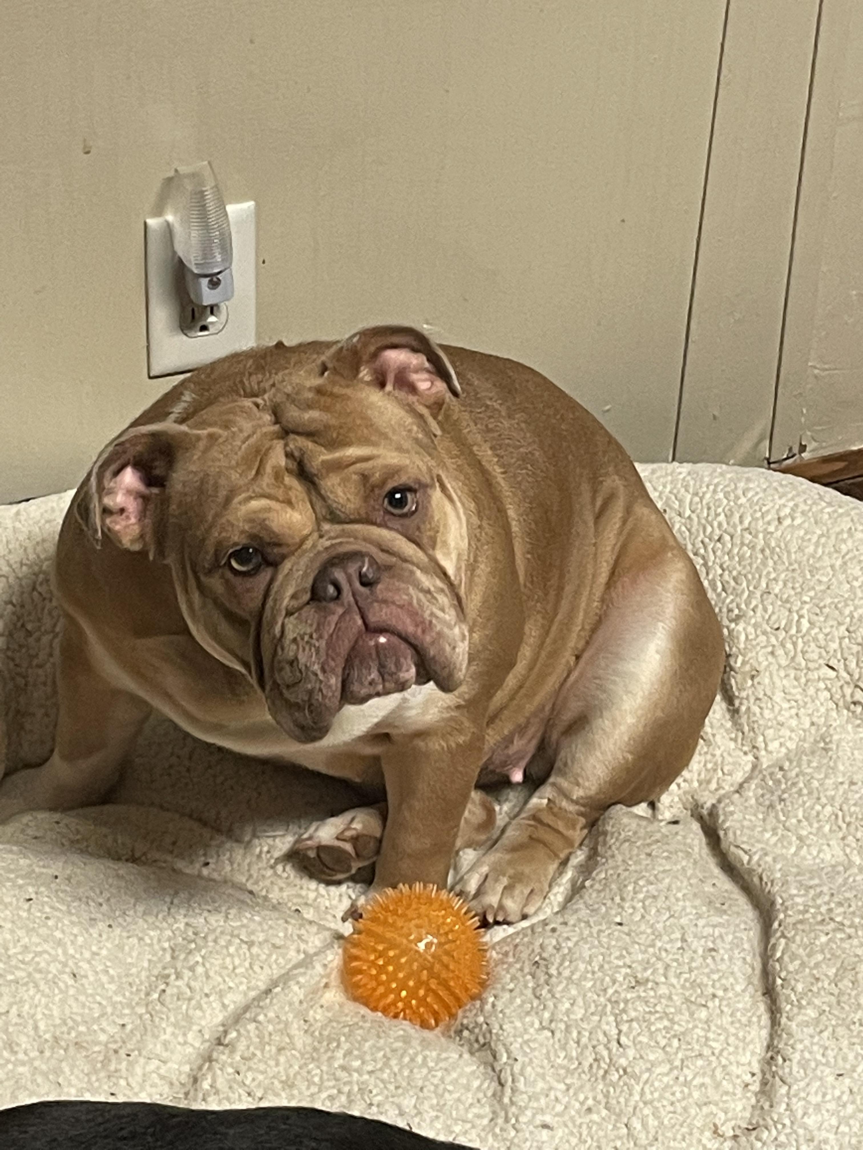 Bear is a male Bulldog. Carefully selected as a great representative of his breed, Shar decided to make him part of their program. Shar has passed Good Dog’s screening process, which involved a review of their breeding practices, environment, and the mental and physical health of their dogs.