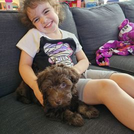 I can't say enough good things about the experience I had buying a puppy (havapoo) from Virginia! She took the time to learn about my family and helped point out puppies she thought would be great with small children, but ultimately let me pick the puppy I wanted. I ended up going with one of her suggestions and couldn't be happier. She always answered all of my questions promptly and with such kindness. You could tell the puppy was well socialized and treated well (she fell asleep belly up on our couch that first night). She loves being carried around by my kids and playing chase with them, but is happy to relax and cuddle, too. Thank you so much for our new best friend!