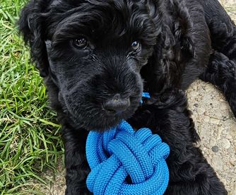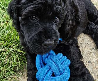 Mona is a female Portuguese Water Dog. Carefully selected as a great representative of her breed, Carrie decided to make her part of their program. Carrie has passed Good Dog’s screening process, which involved a review of their breeding practices, environment, and the mental and physical health of their dogs.
