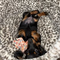 Emma is a female Dachshund. Carefully selected as a great representative of her breed, Silver decided to make her part of their program. Silver has passed Good Dog’s screening process, which involved a review of their breeding practices, environment, and the mental and physical health of their dogs.