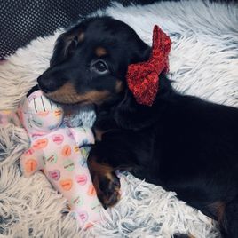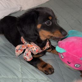 I'm Silver M., the breeder behind Mona Monita Doxies located in Hockley, TX. Every puppy we raise is adored as part of our family from birth. Our puppies will complete your home, your family, and your heart! Our puppies are raised with love in our home, and we strive to help each one grow up with confidence so they are ready to thrive with their new families. They are affectionate, intelligent, and cute as can be!