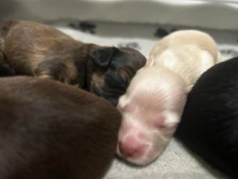 Our puppies include piebald, cream, red, black and tan, chocolate and cream, black and cream, and dapple. Colors will vary depending on the parent dogs.