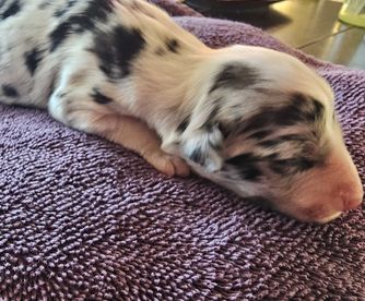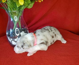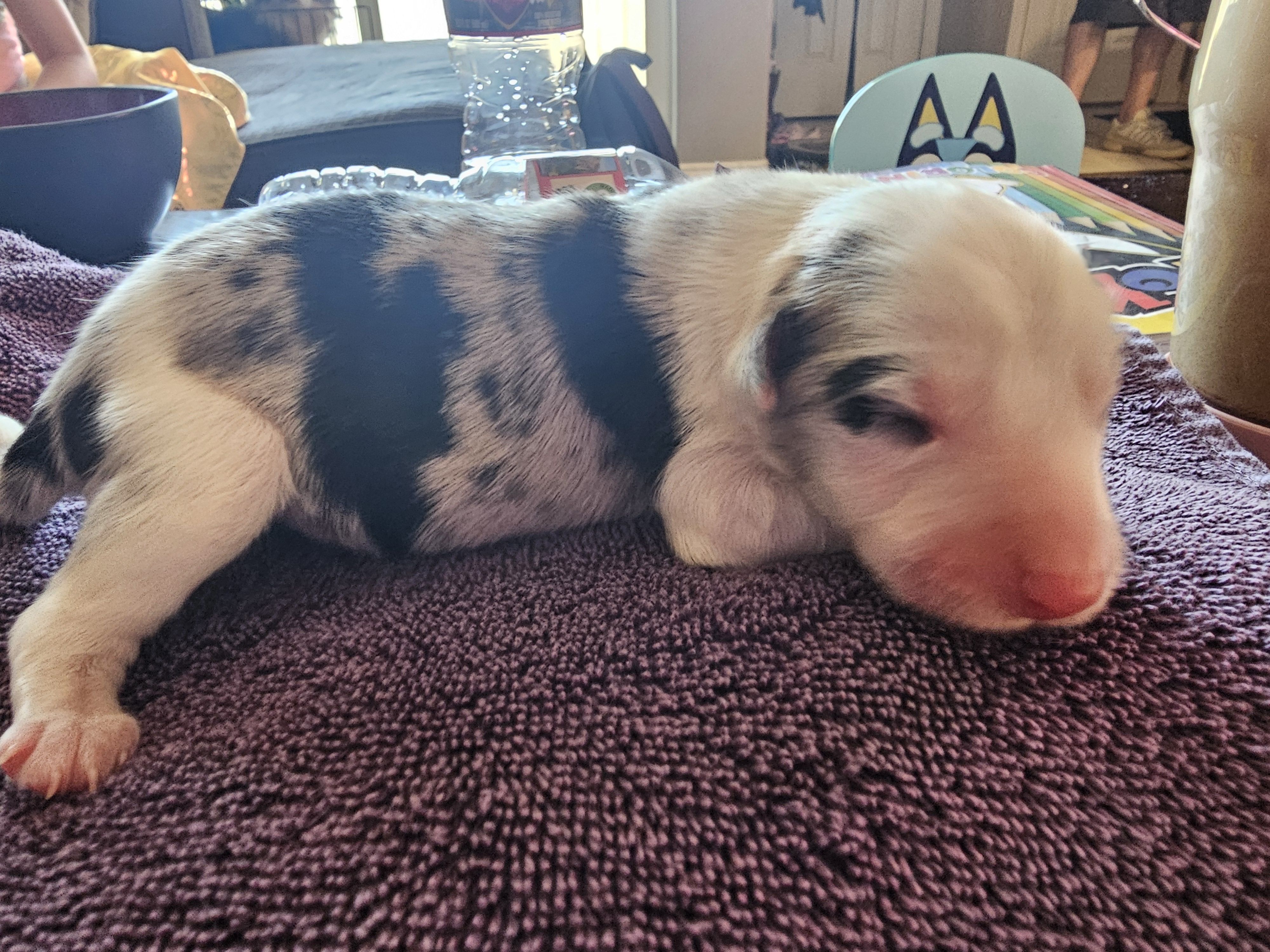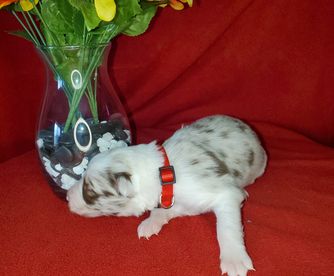 Our puppies include blue merle and black. Colors will vary depending on the parent dogs.