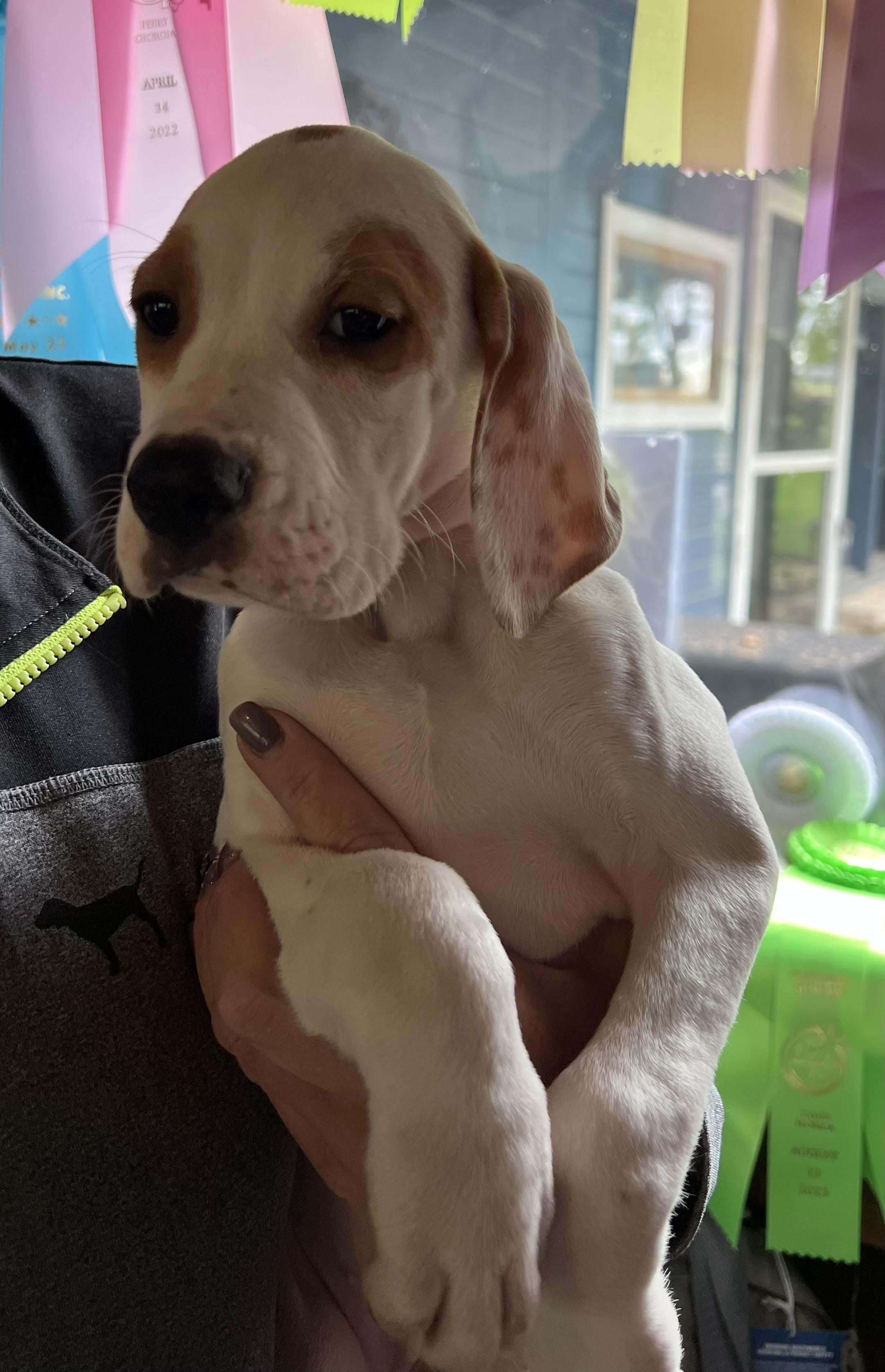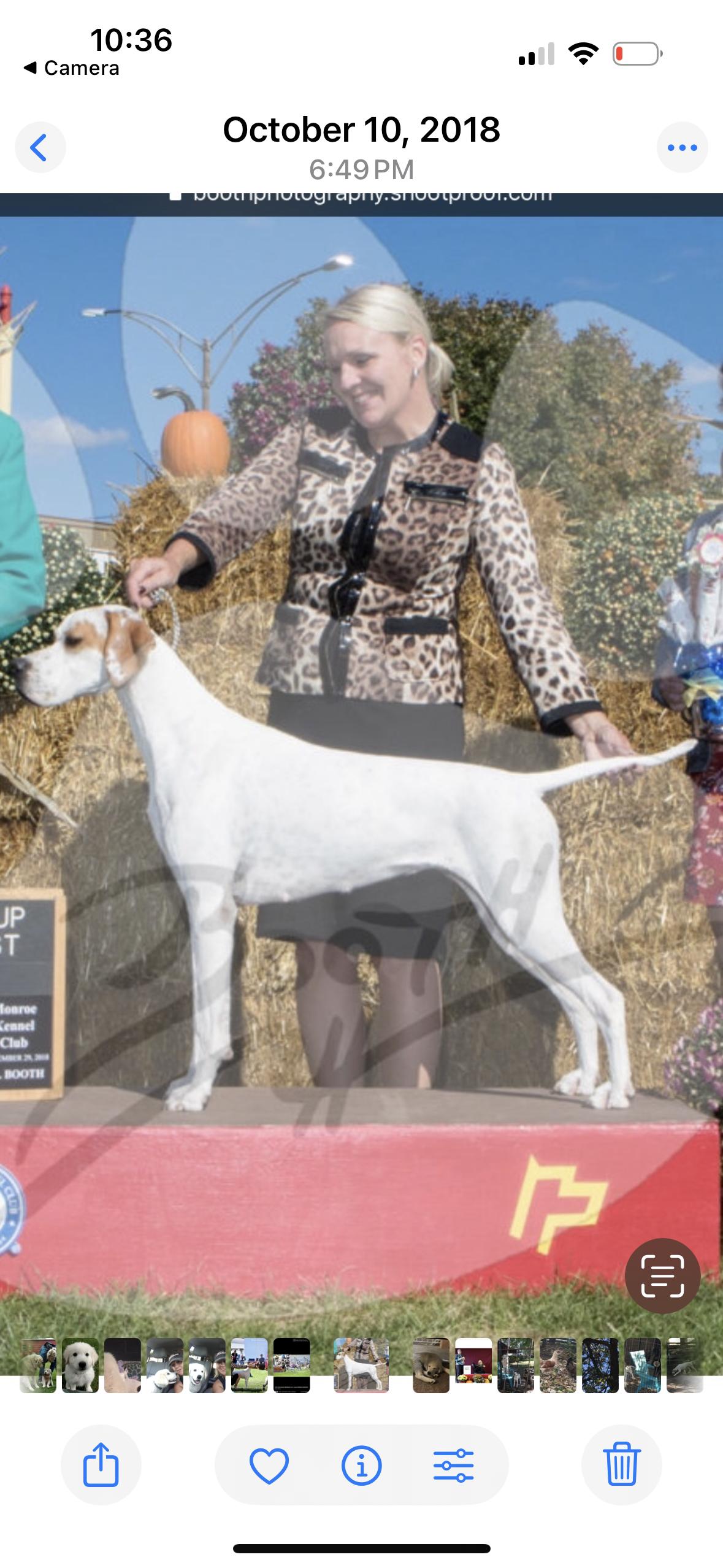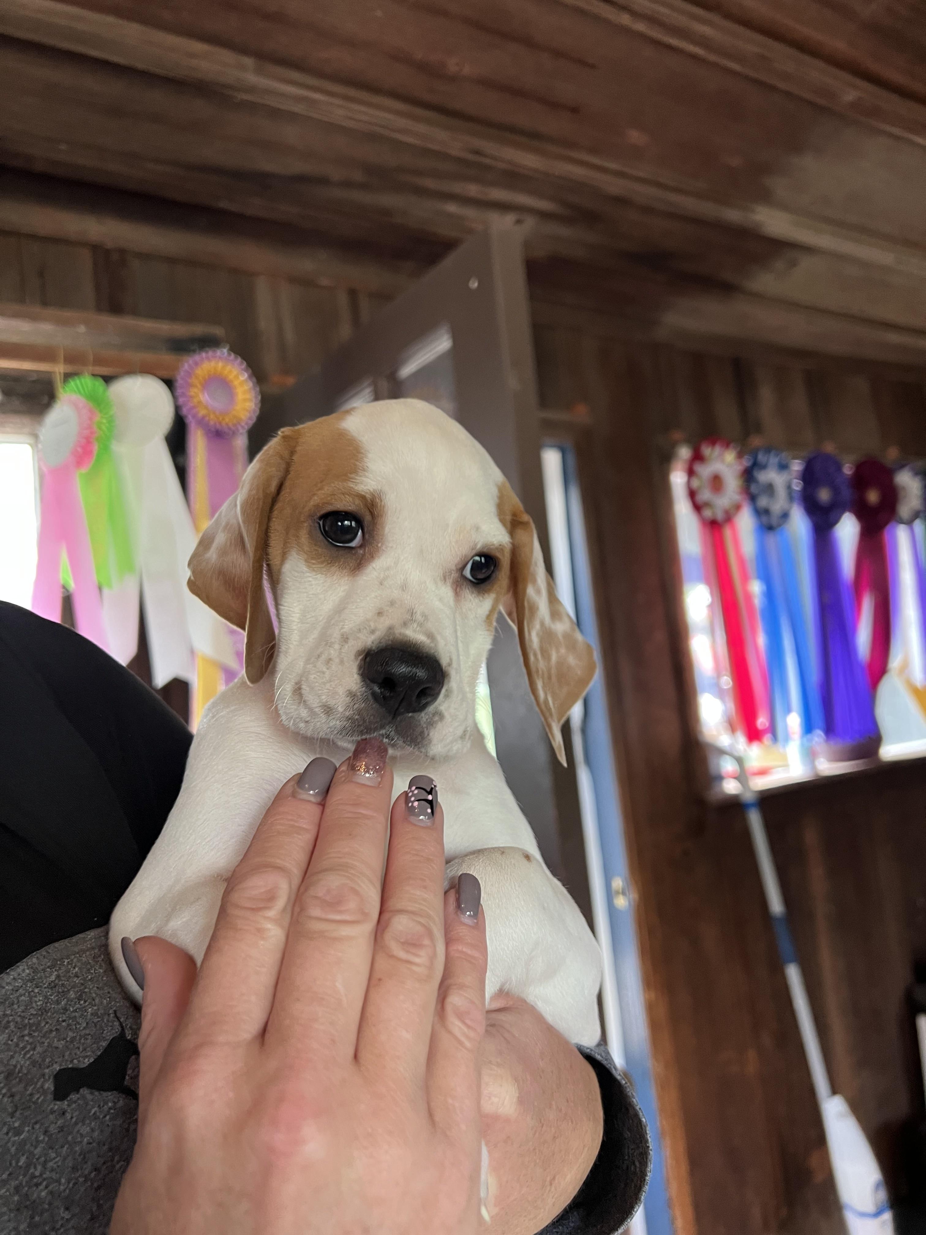 Chick is a female Pointer. Carefully selected as a great representative of her breed, Suzzie decided to make her part of their program. Suzzie has passed Good Dog’s screening process, which involved a review of their breeding practices, environment, and the mental and physical health of their dogs.