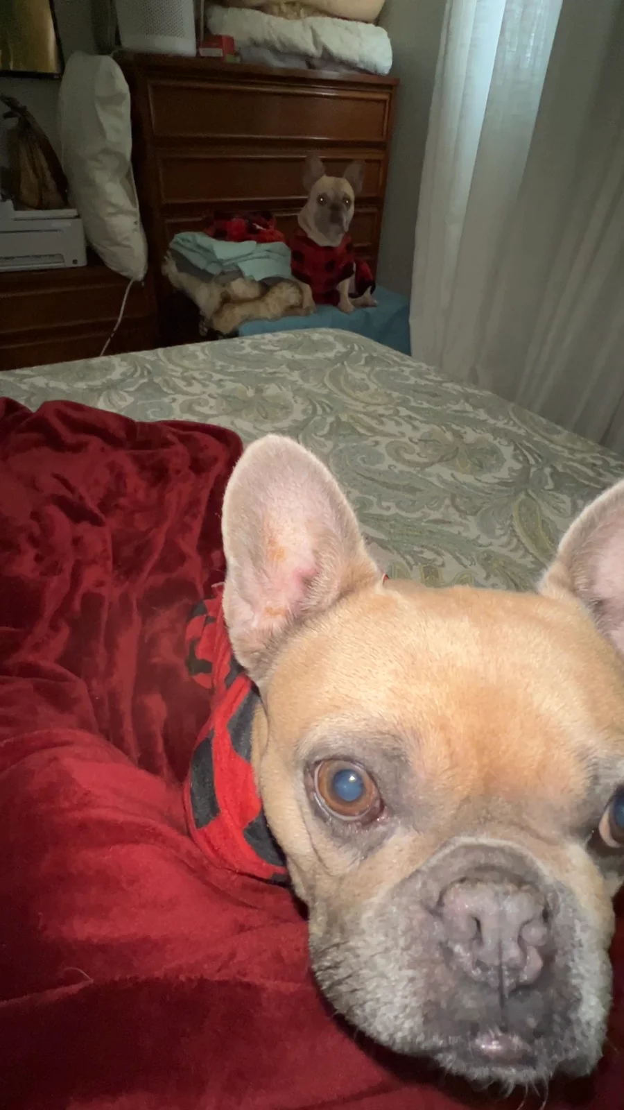 Blue Fawn mini French Bulldog 15lbs 10” base of neck to lumbar.