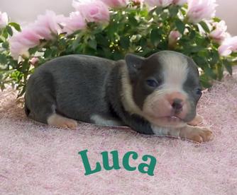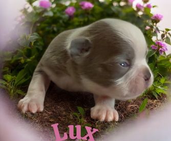 Luna is a female Boston Terrier. Carefully selected as a great representative of her breed, Lyn decided to make her part of their program. Lyn has passed Good Dog’s screening process, which involved a review of their breeding practices, environment, and the mental and physical health of their dogs.