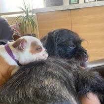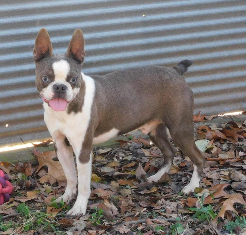 Rue is a female Boston Terrier. Carefully selected as a great representative of her breed, Lyn decided to make her part of their program. Lyn has passed Good Dog’s screening process, which involved a review of their breeding practices, environment, and the mental and physical health of their dogs.