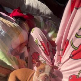 Pocket is a male Boston Terrier. Carefully selected as a great representative of his breed, Lyn decided to make him part of their program. Lyn has passed Good Dog’s screening process, which involved a review of their breeding practices, environment, and the mental and physical health of their dogs.