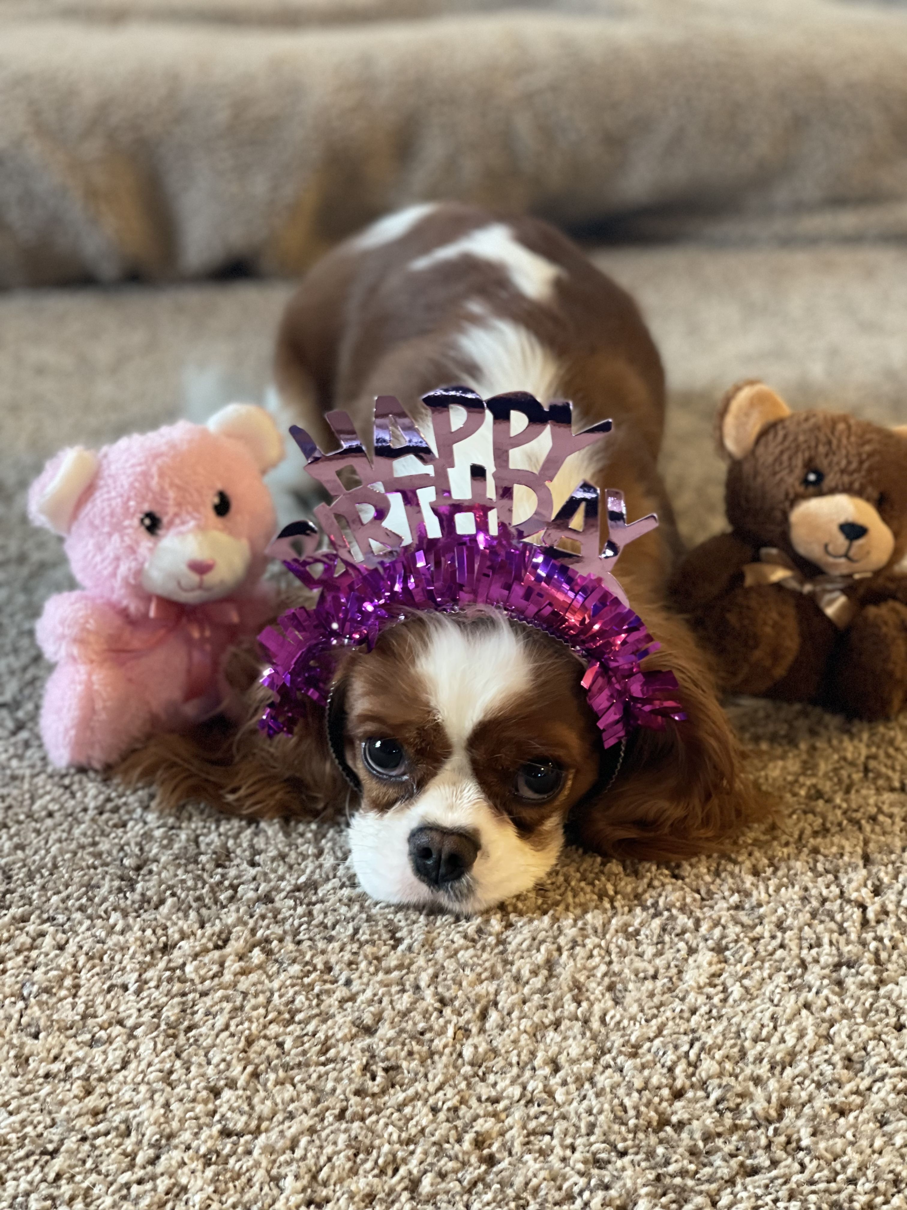 Liberty is a female Cavalier King Charles Spaniel. Carefully selected as a great representative of her breed, Annette decided to make her part of their program. Annette has passed Good Dog’s screening process, which involved a review of their breeding practices, environment, and the mental and physical health of their dogs.