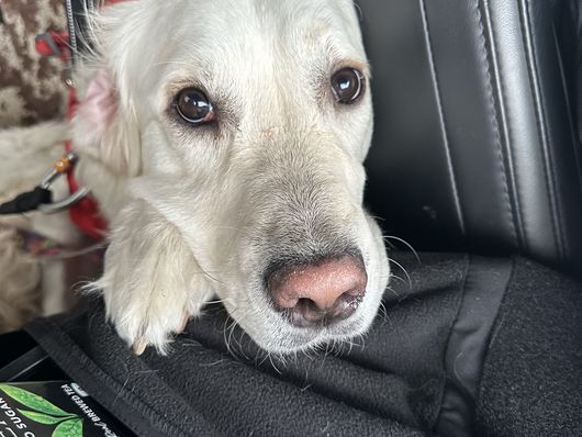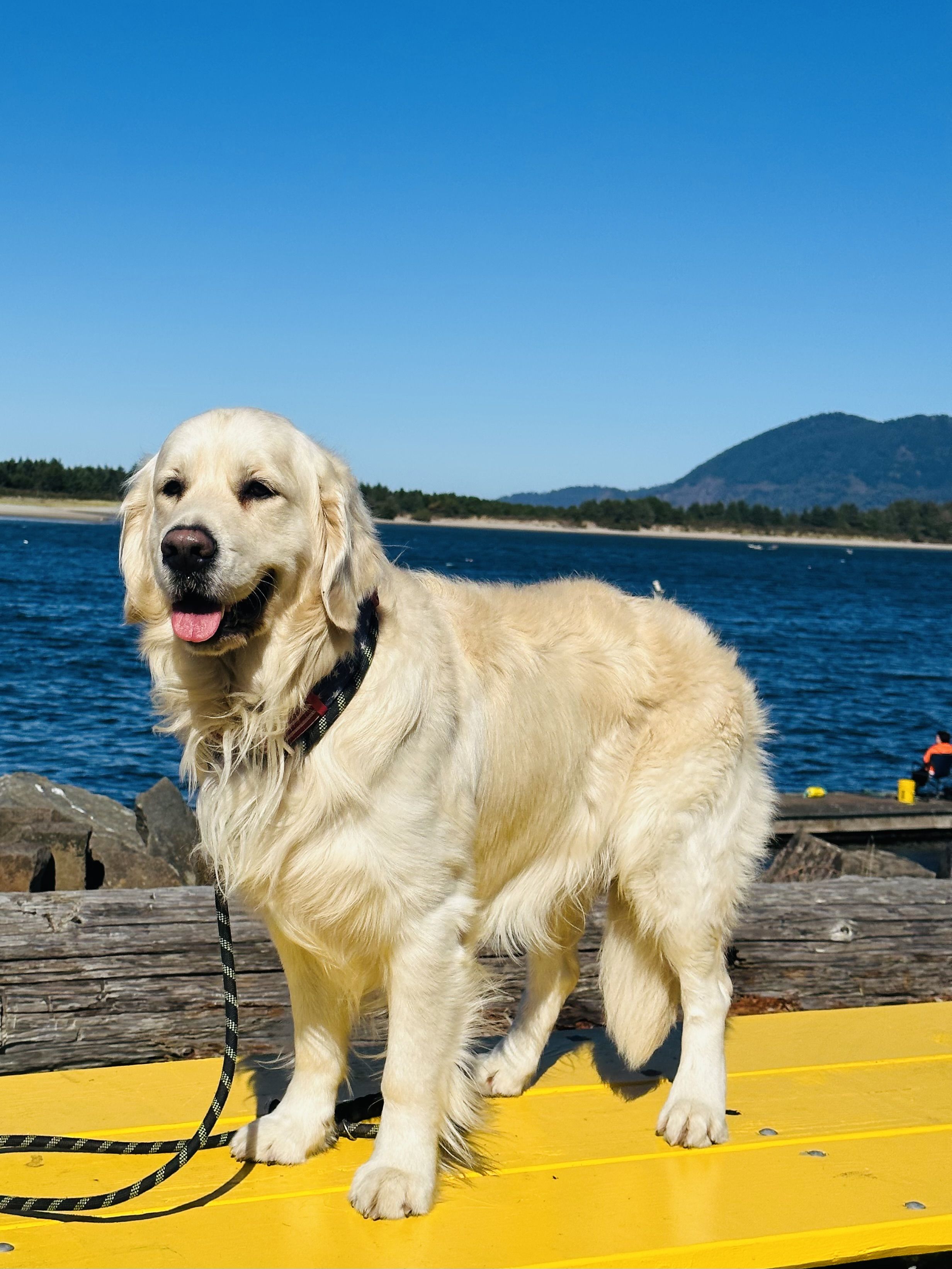Kit is a female Golden Retriever. Carefully selected as a great representative of her breed, Annette decided to make her part of their program. Annette has passed Good Dog’s screening process, which involved a review of their breeding practices, environment, and the mental and physical health of their dogs.