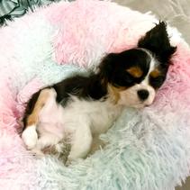 Our Japanese Chin puppies include lemon and white, red and white, sable and white, and black and white. Cavalier King Charles Spaniel puppies include blenheim and tri-color. Colors will vary depending on the parent dogs.