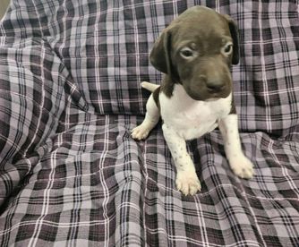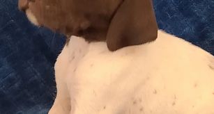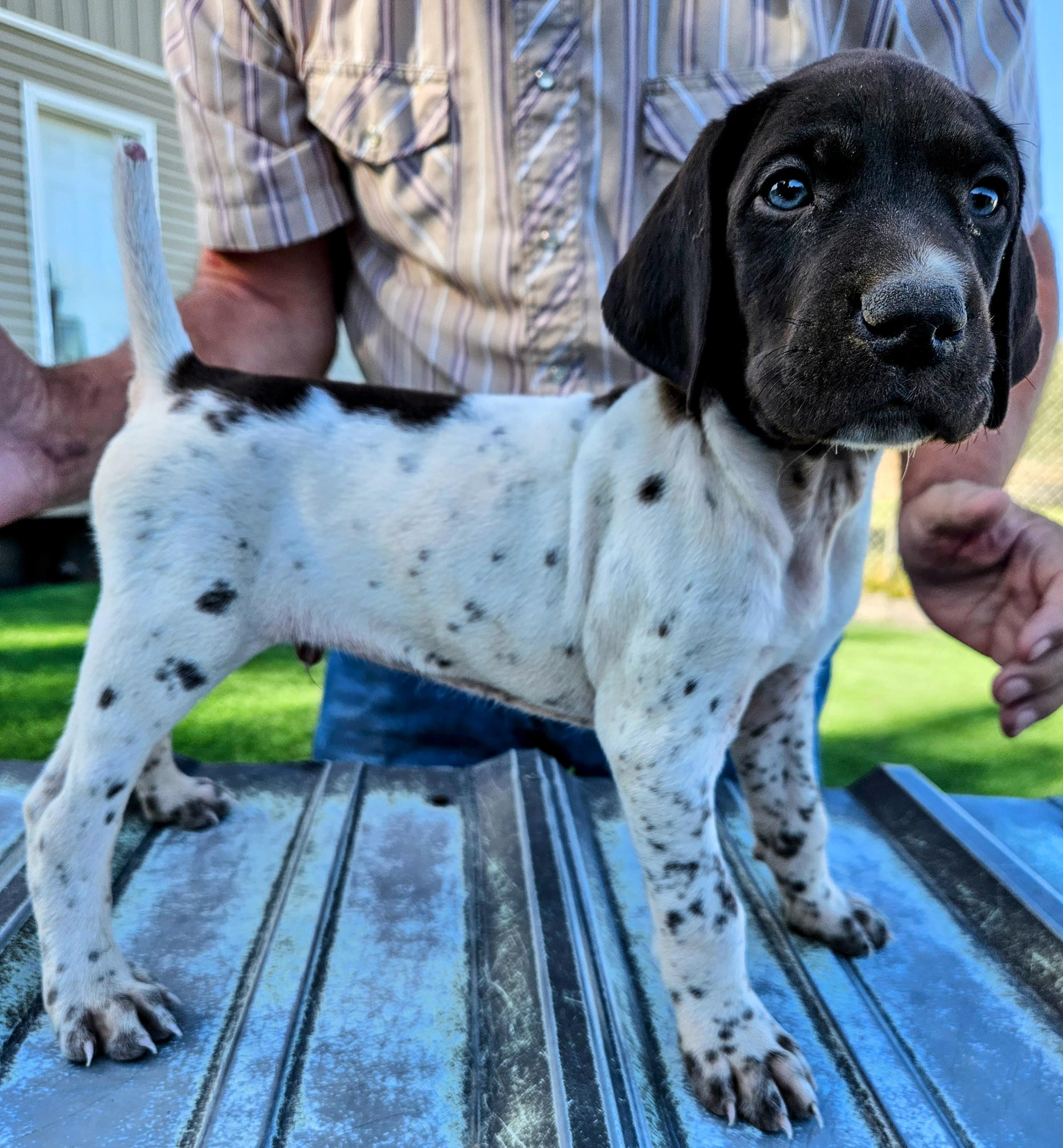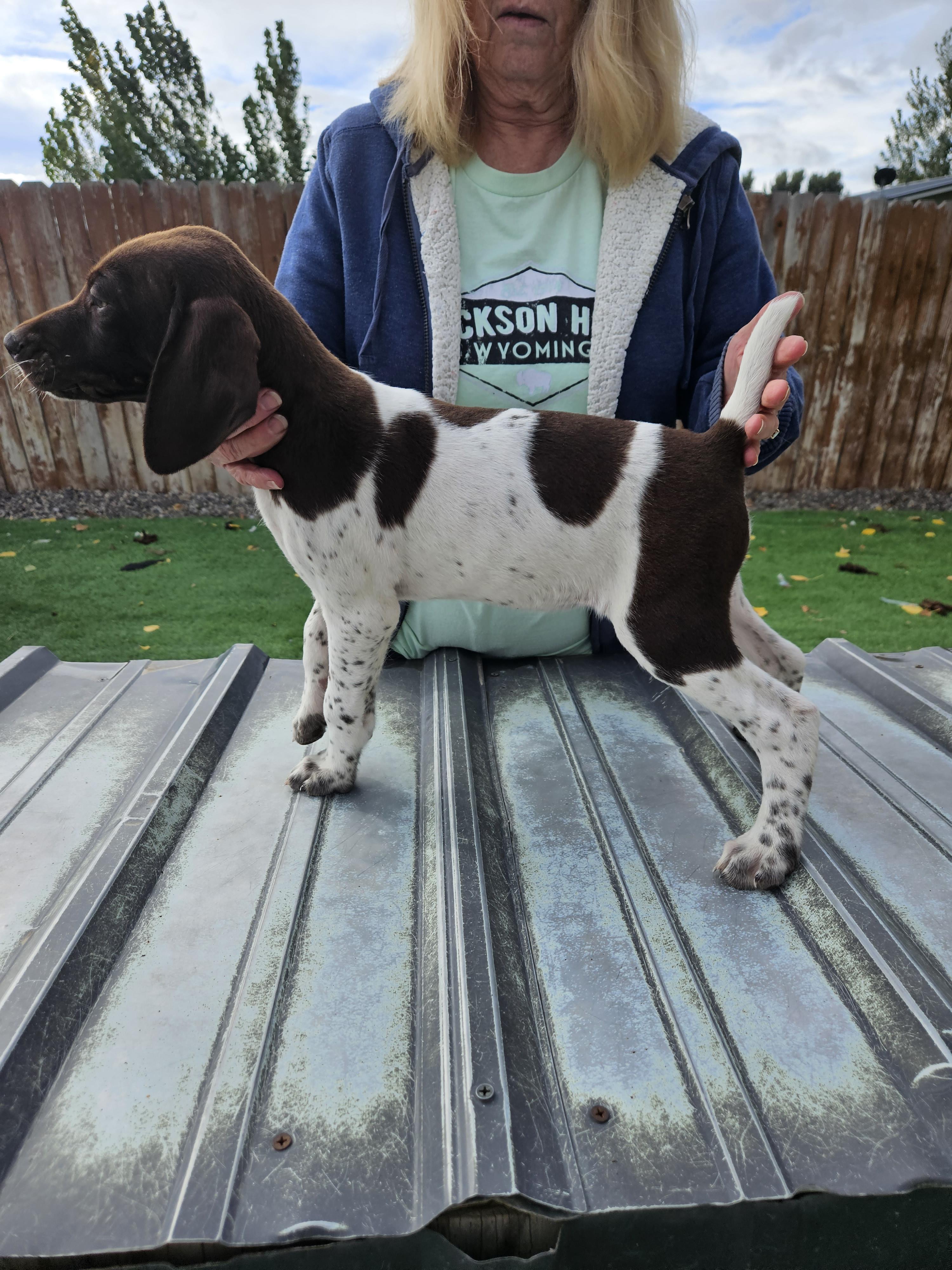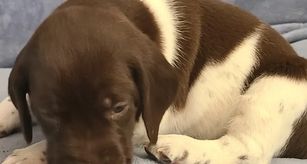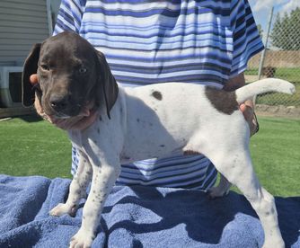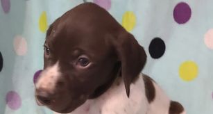 Our puppies include liver roan and liver and white. Colors will vary depending on the parent dogs.