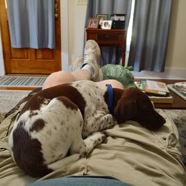 Bug was hold a point for minutes by the time she was 4 months old. Bug got her name because she is such a lovebug. Just a joy to be around. And she passes those traits on to her pups.