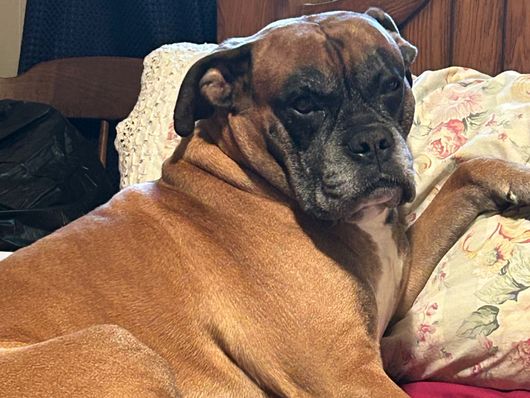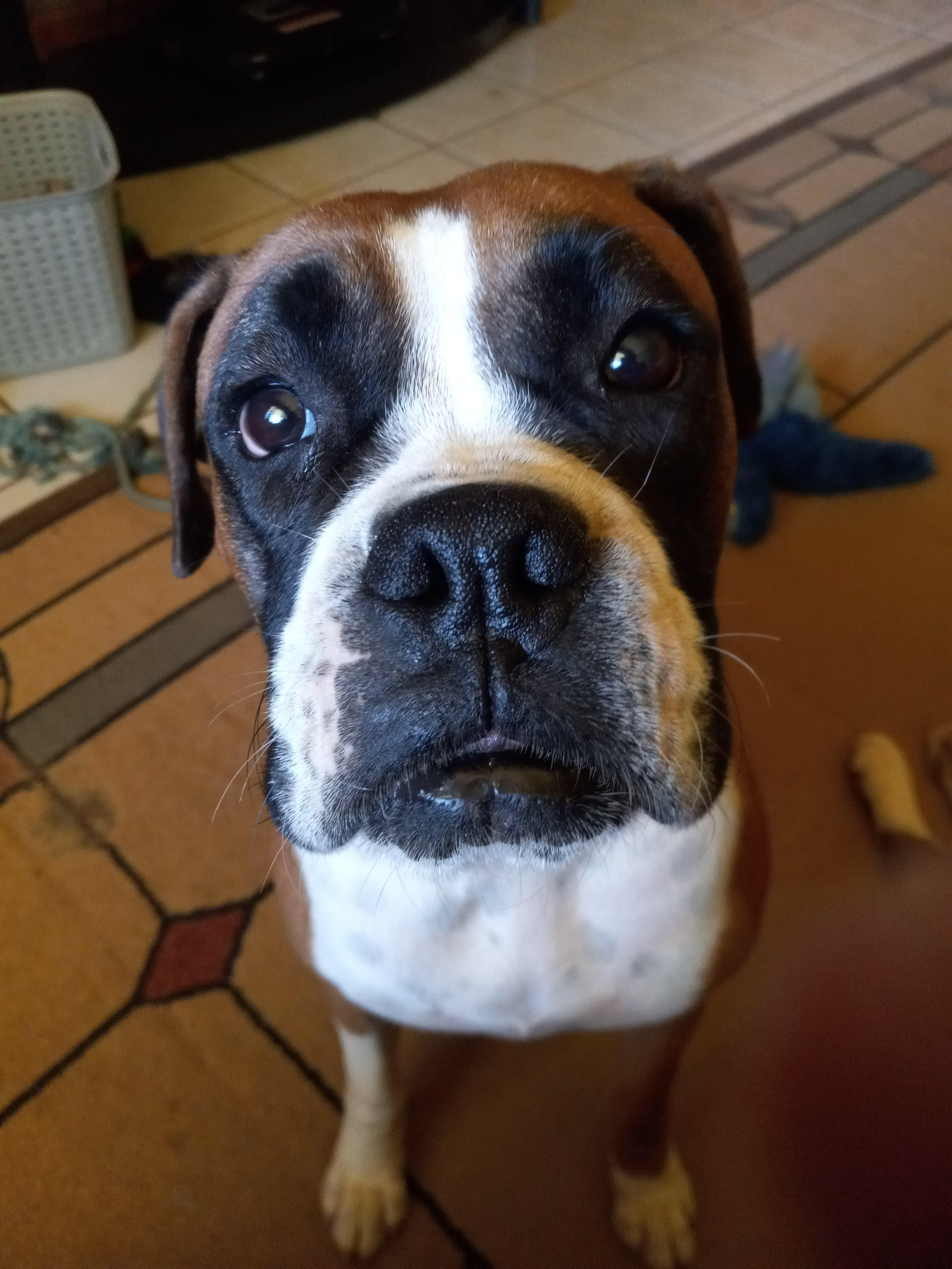 Jules is a female Boxer. Carefully selected as a great representative of her breed, Sharon decided to make her part of their program. Sharon has passed Good Dog’s screening process, which involved a review of their breeding practices, environment, and the mental and physical health of their dogs.