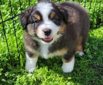 Our puppies include black and blue merle. Colors will vary depending on the parent dogs.
