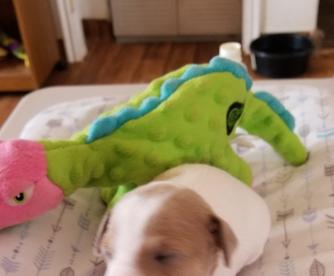 “My puppies are born inside my home with whelping box in my bedroom.., they get hands on love, I begin to socialize pups with other dogs and after shots I introduce to outside and people at my local stores, this enables them to hear see and smell different things..any questions feel free to ask..