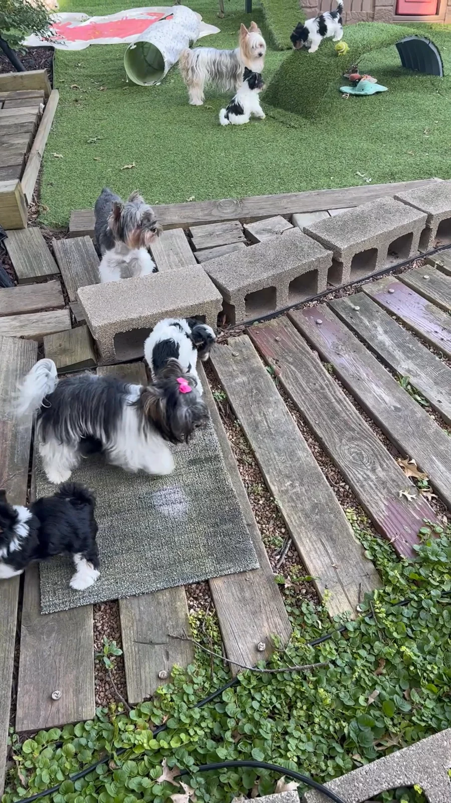 We spend a lot of time playing in our very own in-home dog park! This is great for acclimating the pups to different sounds. You can hear the train in the background. It is very loud in real life, but the puppies are not concerned at all. Everybody just keeps playing 😊