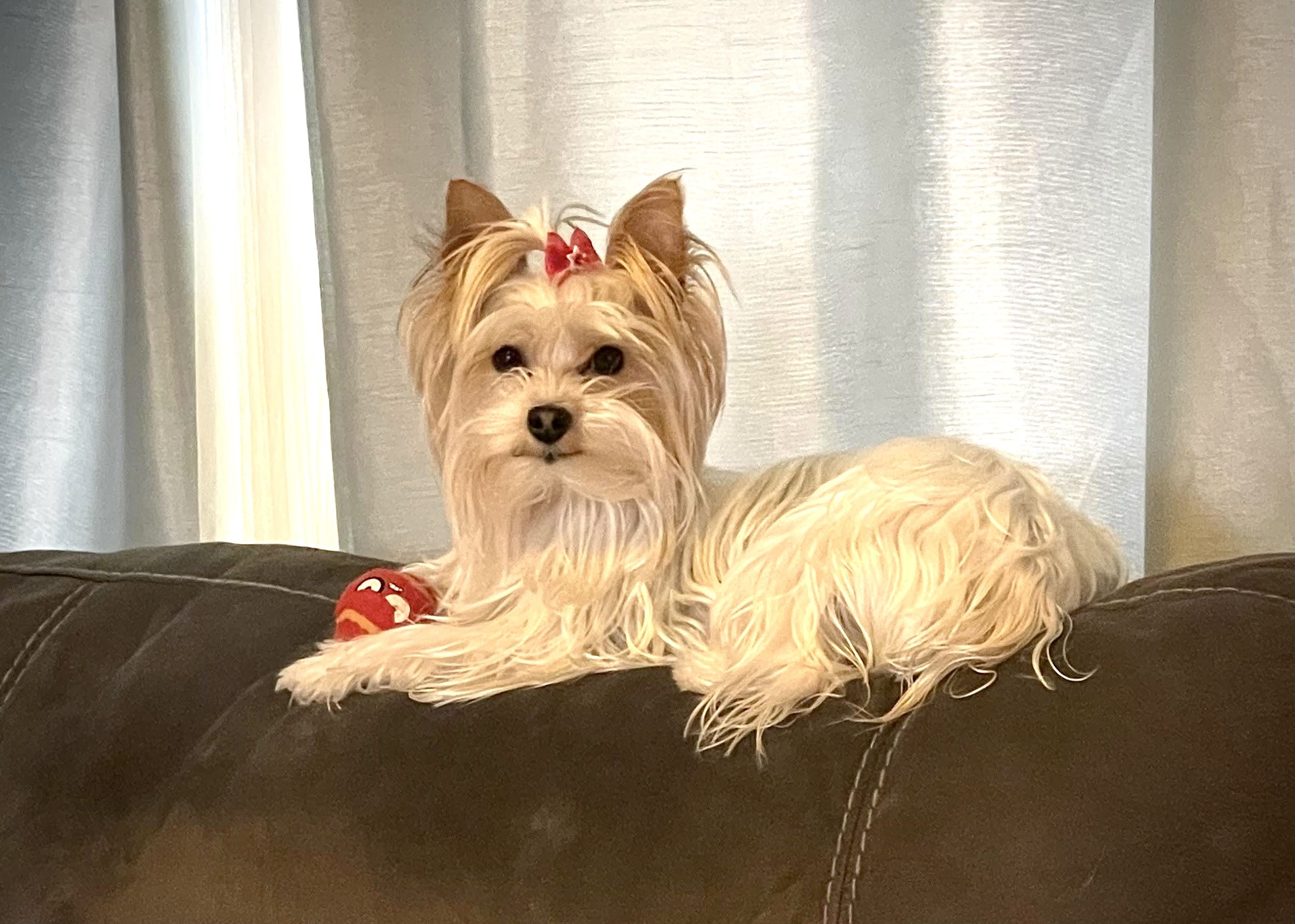 Georgie is a female Yorkshire Terrier. Carefully selected as a great representative of her breed, Andrea & James decided to make her part of their program. Andrea & James has passed Good Dog’s screening process, which involved a review of their breeding practices, environment, and the mental and physical health of their dogs.