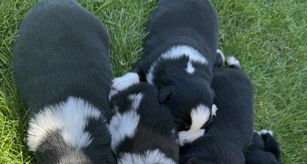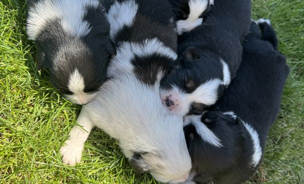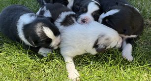 Our puppies include red tri-color, black tri, red merle, and blue merle. Colors will vary depending on the parent dogs.