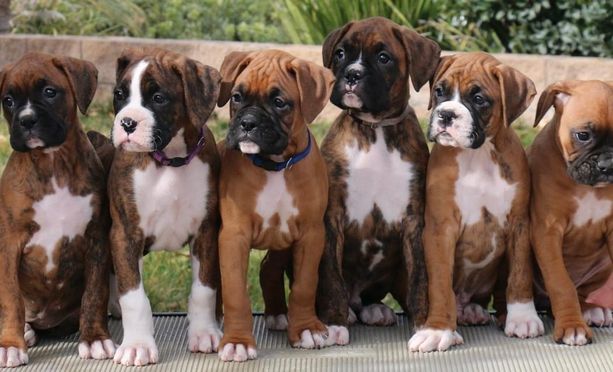Our Boxer puppies include fawn and brindle. Armenian Gampr puppies include biscuit and white and black. Colors will vary depending on the parent dogs.