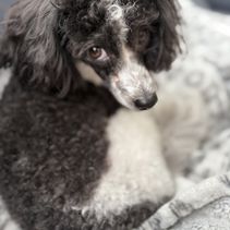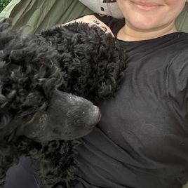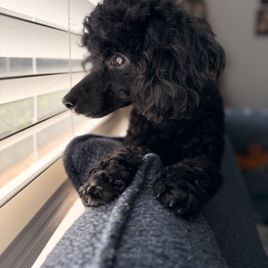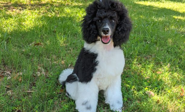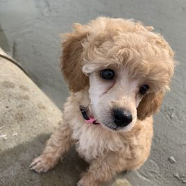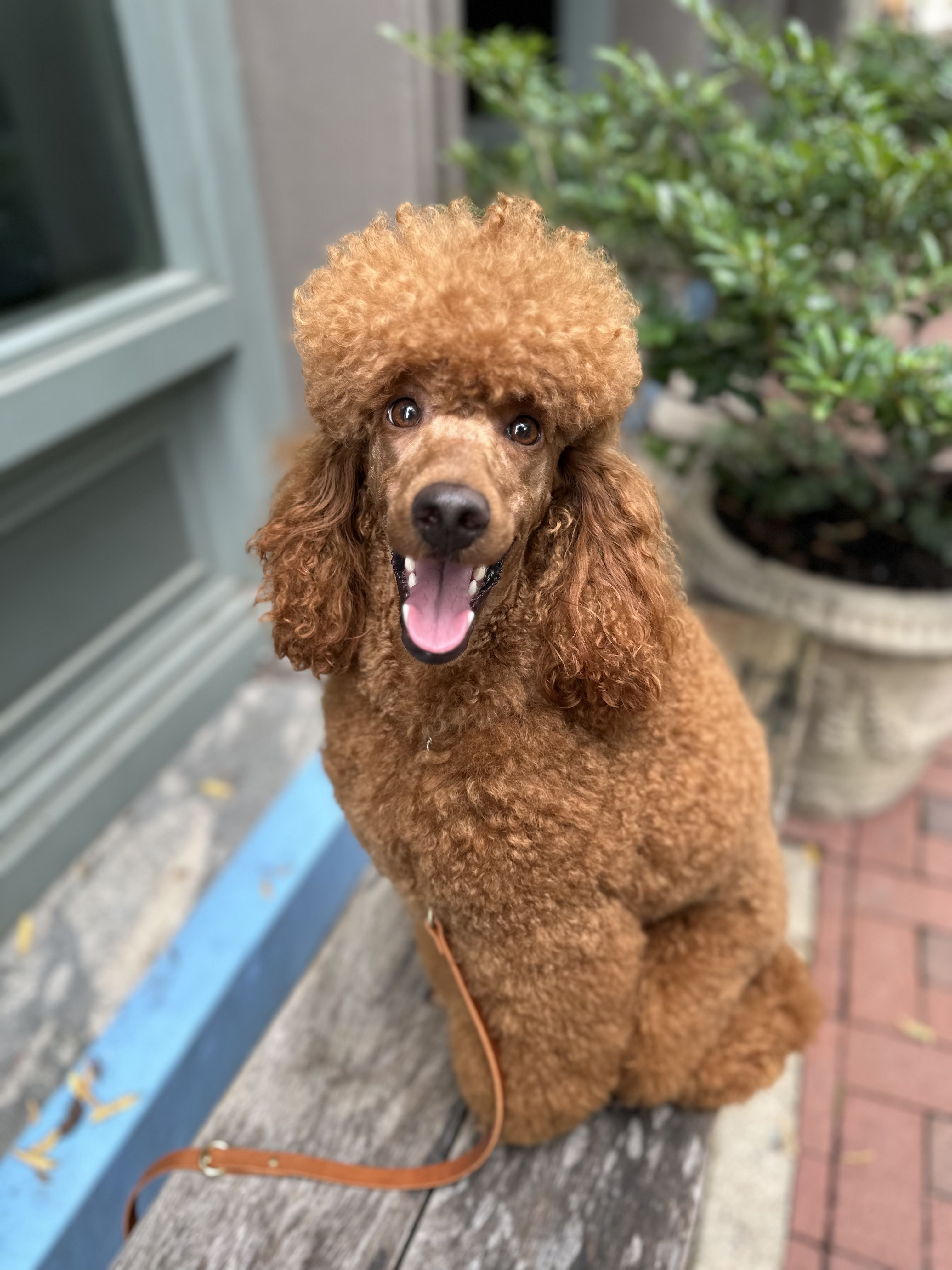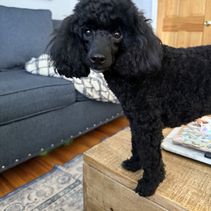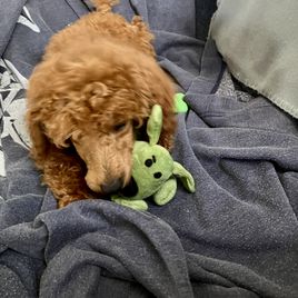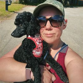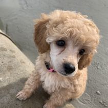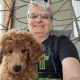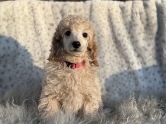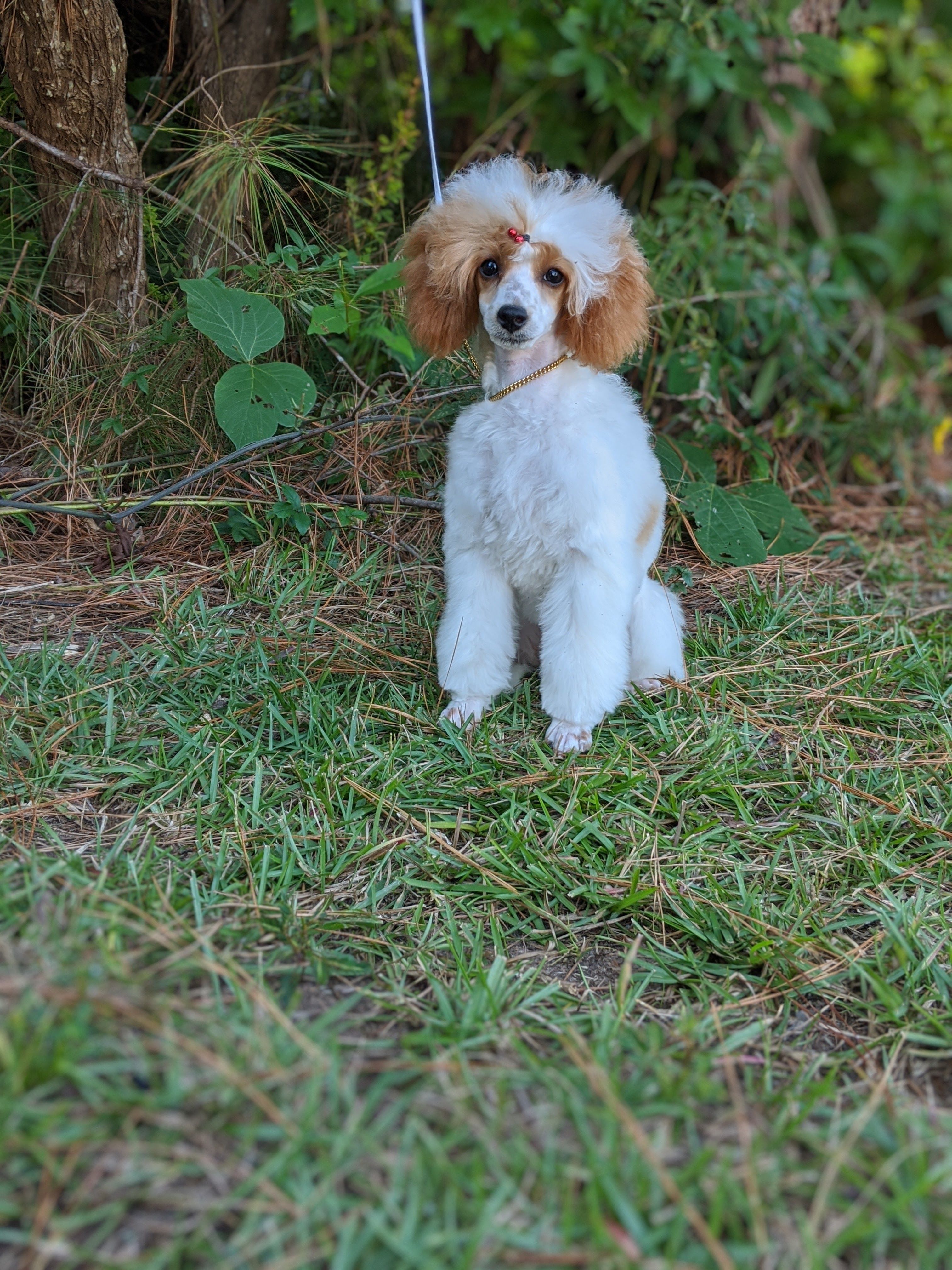 I found Lexa and Moonrise Poodles on Gooddog while searching for either a miniature or a Moyen poodle. We had a very good conversation where she told me about her poodles and I told her about my experience with dogs. She suggested Lola to me as I was looking for a female puppy. She felt Lola would be a good match for me temperamentally. As I was out of state, we had an extended FaceTime session to talk about Moonrise Poodles and see Lola before placing a deposit and signing a purchase contract through Gooddog. We drove to South Carolina and met Lexa and baby Lola at Starbucks. Lola was an adorable bundle of fluff. She handled the trip home in my lap with aplomb. Lexa provided a number of different what to expect emails for things such as immunizations, where you can take your puppy, training, dog food, pet insurance, travel and grooming. I felt we were well supported. We got settled in at home with the puppy enclosure in the family room as well as a crate for naps and bedtime in our bedroom. I put the crate on a hassock right next to our bed so Lola could see us and not be lonely. That worked out very well and she is the first puppy I have had that did not cry in the crate at bedtime. House training has gone pretty well. At seven months, she’s pretty well got things down. We still don’t leave her unsupervised except when she’s in her enclosure or her crate. She is a great companion dog. She definitely wants to be with her people. It’s just been within the last month or so that she’s become a little more vocal and will bark if she feels her territory is being invaded. She’s doing well on the leash and we go for long walks in the morning before it gets too hot Lola is in good health. She has regular vet visits. She did have an issue with retaining some of her baby teeth after her adult teeth grew in and our Vet has dealt with that She has gone to the groomer a number of times and is currently sporting a poodle style haircut. Her hair is starting to curl more as she’s beginning to get her adult coat. This is my first poodle I have had cairn terriers, a sweet natured pup from the Humane Society, a pug prior to this. A few things that have been a surprise to me so far. Poodles, even small ones can achieve some impressive vertical leaps. I am super glad that I went with the pup enclosure. Lexa recommended because Lola can hop over your basic baby gate with ease and frankly, thought nothing of zooming up a flight of stairs. My previous dogs were not jumpers. Another thing as a non-poodle owner, I was not prepared for was the necessity of plucking ear hairs on occasion. Neither Lola nor I like that. Last is that Lola can be a picky eater. Again, my previous dogs did not prepare me for that. The above was a lot of minutia. In short, I am very happy with my decision to get Lola and to work with Lexa.