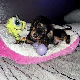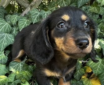 Dachshund puppies have longhaired coats. Coat types may vary depending on the parent dogs.