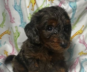 Our Cockapoo puppies include brown roan and tan, brown roan, brown and white, brown and tan, brown, blue roan and tan, blue roan, black white and tan, black and white, black and tan, black, buff, and brown white and tan. Dachshund puppies include piebald, cream, red, chocolate, black and cream, black and tan, chocolate and tan, blue and cream, and dapple. Poodle puppies are parti. Colors will vary depending on the parent dogs.