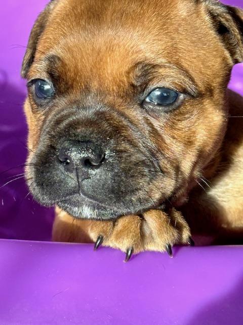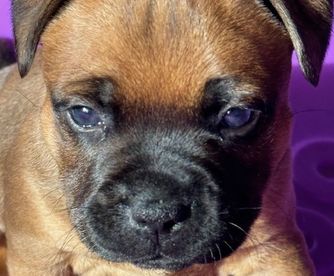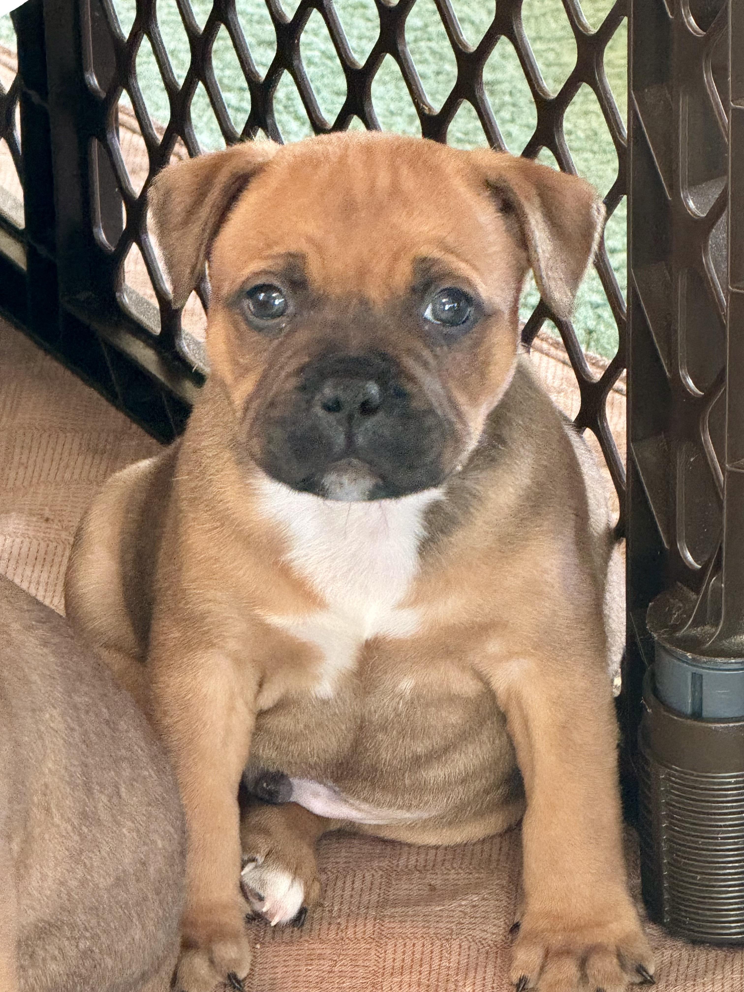 Our puppies include brindle and white, brindle, red, and red and white. Colors will vary depending on the parent dogs.