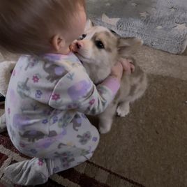 Stevie is 4 years old and comes from 5 generations of Corgis beginning with my very first in 2009. Her great grand dam was a registered pembroke and the one bred to a Cardigan/pembroke male. All generations after have all been AKC Pembroke. So her offspring should have pembroke personality like she does. She is sooo sweet and kind. Always avoiding any confrontation. This is her first litter and is doing a fantastic job at motherhood. It comes super natural.