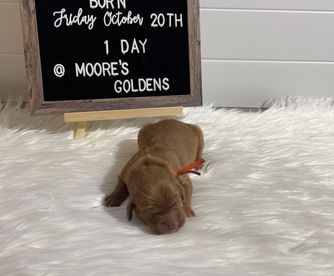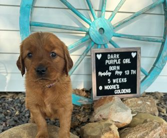 I'm Karlie M., the breeder behind Moore’s Goldens located in Litchfield, IL. We’re proud of the healthy, affectionate, and behaviorally well-rounded puppies we raise for other families to love! We have developed several protocols to ensure the health and well-being of all of our dogs. It’s our top priority to make sure each of our puppy families welcomes a happy and healthy new family member into their homes!